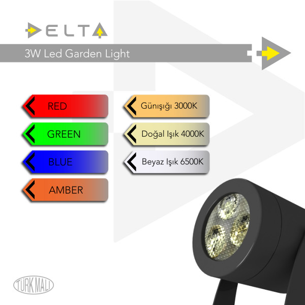 DeltaLed 3W Led Bahçe Peyzaj Spotu - Altın Kasa