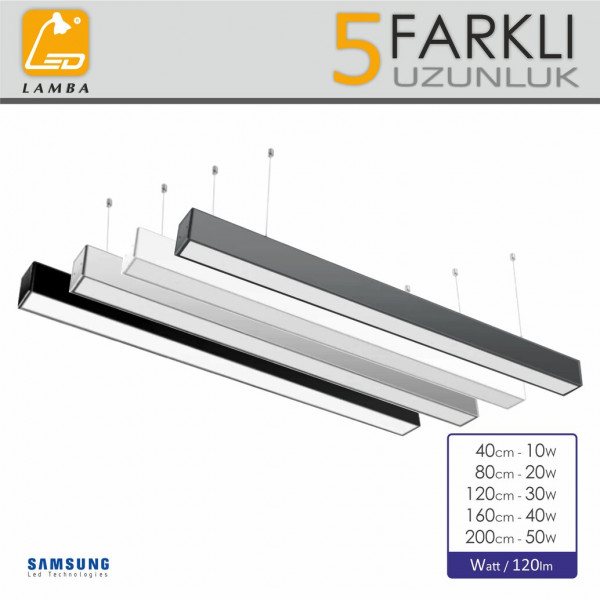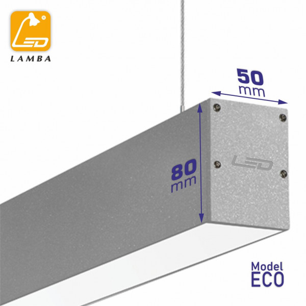 ECO LINEER sarkıt modelimiz 5x8cm standart ölçülerine sahiptir. Gövde materyali yüksek ısı transferi sağlayabilen kaliteli alüminyum malzemeden üretilmiştir. Gövde boyası elektrostatik toz boyadır ve korozyona dayanıklı olup uzun ömürlüdür. Ürünlerimiz 5 farklı boy ile satışa sunulmuş olup, farklı ölçü talepleriniz için bize ulaşabilirsiniz. Ürünlerimizde yüksek Işık veren ancak düşük tüketim sağlayan Samsung Marka Led kullanılmaktadır. Ürün ile birlikte 150cm ayarlanabilir askı seti standart olarak gönderilmektedir. Ürünlerimiz 2 yıl garantimiz altında olup herhangi bir sorunuz için Whatsapp hattımız üzerinden bize ulaşabilirsiniz