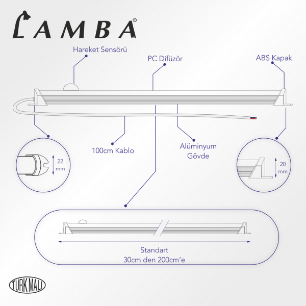 MUTFAK TEZGAH LEDİ adaptörsüz direk 220V şebeke voltajı ile çalışır ve kurulumu çok kolaydır. Ürünlerimizin 2 farklı kapak seçeneği bulunmaktadır. Eğer mutfak tezgahınız parlak ise ledlerin tane tane görünmemesi için buzlu kapak öneririz. Ancak tezgahınız mat ise şeffaf kapakta tercih edebilirsiniz. Buzlu kapak ile şeffaf kapak arasında %10 kadar ışık kaybı bulunmaktadır. Ürünlerimiz standart 50cm fişsiz-anahtarsız kabloya sahip olarak satışa sunulmuştur. Ancak fişli-anahtarlı kablolu ve hareket sensörü opsiyonumuzda bulunmaktadır. 2 farklı ışık rengi seçeneğimiz olup ürünlerimizde yüksek ışık şiddetine sahip SAMSUNG marka led kullanılmaktadır. Ürünlerimizin gövde materyali yüksek ısı transferi sağlayabilen kaliteli alüminyumdur. Gövde özel alüminyum eloksal ile kaplanmış olup korozyona dayanıklı ve uzun ömürlüdür. Ürünlerimiz farklı gövde uzunlukları ile satışa sunulmuştur. Ürün ile kolay montaj seti olarak 2 adet metal klips gönderilmektedir. Ürünlerimiz 2 yıl garantimiz altında olup herhangi bir sorunuz için Whatsapp hattımız üzerinden bize ulaşabilirsiniz.